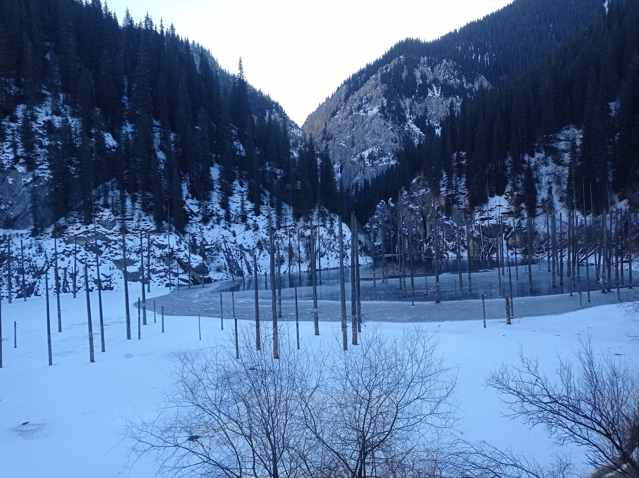 Недалеко от озера Кольсай находится ещё одно озеро,главная фишка которого торчащие из воды затопленные остовы елей.