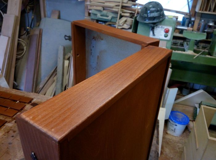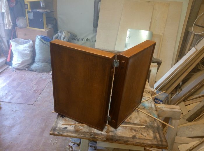 Вообще этой витриной я не доволен. Много конструктивных вещей, которые меня не устроили, ручки не нравятся, петли хотелось бы в тон ручкам, отделка под лак мне кажется непрактичной..