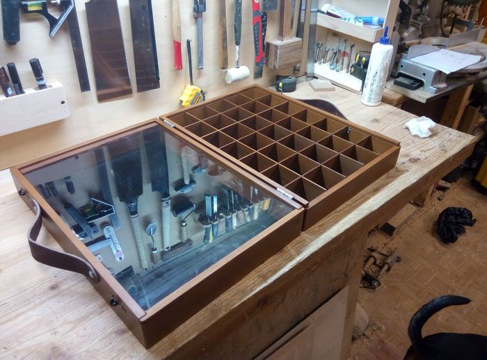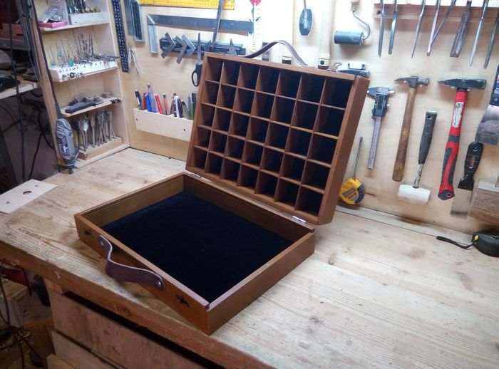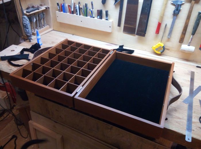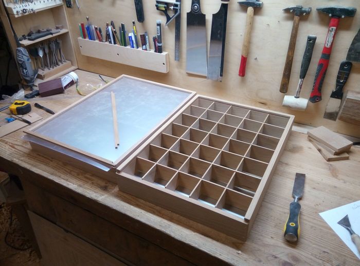 Вот такие две половинки получилось. Часть перегородок можно достать и организовать пространство как хочется. Обе половинки имеют пазы для выдвижных крышек. Крышки будут из акрила.