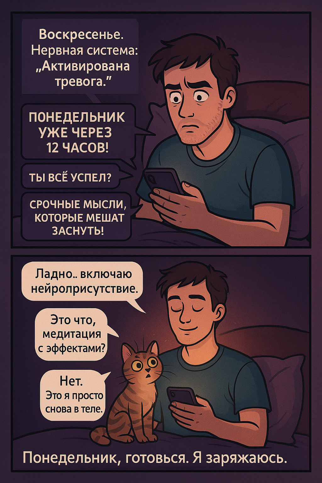Через пару минут — «Ты всё успел?», «А если что-то пойдёт не так?», «Ты вообще готов жить дальше?» 😅
