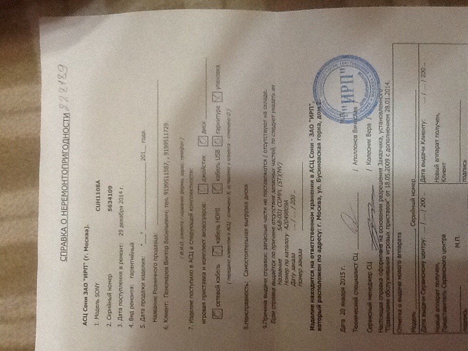 Купил 25 сентября 2014 себе в Мвидео консоль, думал на года, не надо апгрейдить, а Sony всегда были качественная фирма. Но 19 декабря 2014 года она сломалась, ну подумал не беда, с кем не бывает отправлю сервис, мне новую пришлют или заменят, но я ошибался.