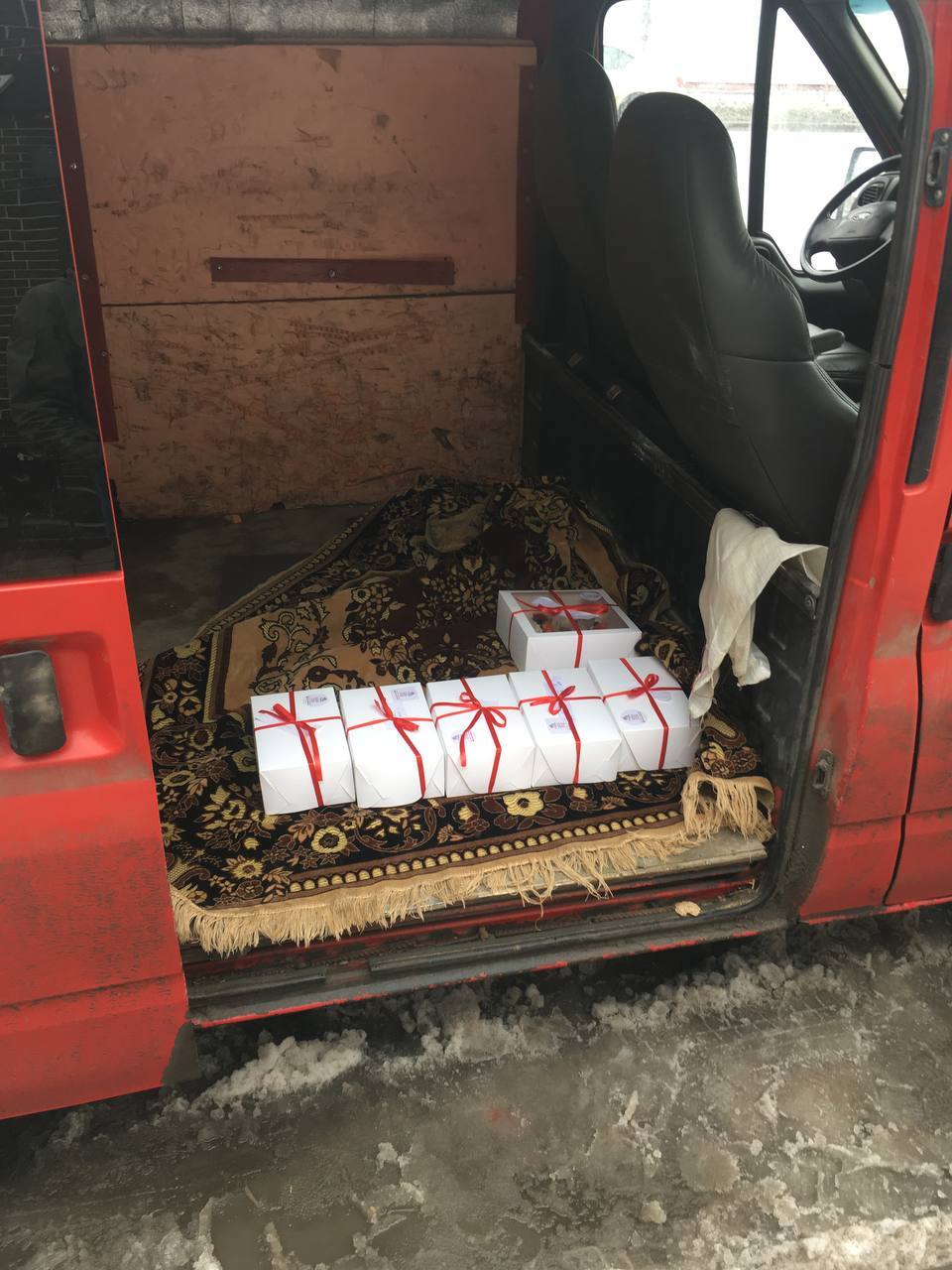Еще из интересного было, на 14 февраля развозить подарочные тортики-пирожные по адресам. Вот, таких было две загрузки за день. Да, 6 коробочек, на грузовой транзит. Причем почти все эти заказы, от девушек для парней.