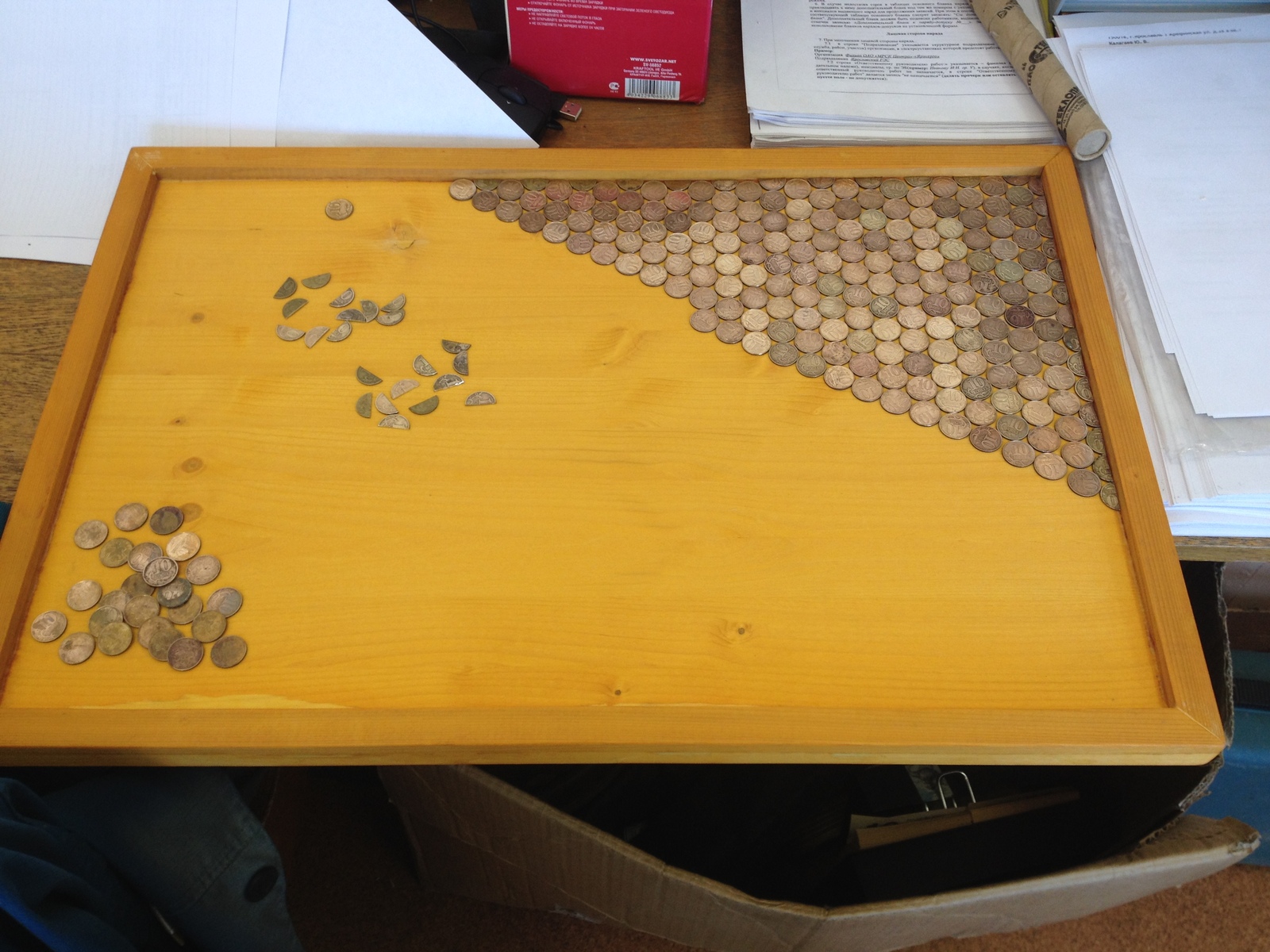 Если кому интересно было использовано 759 монет. Сильно не пинайте, фоткал на все что попадало под руку.