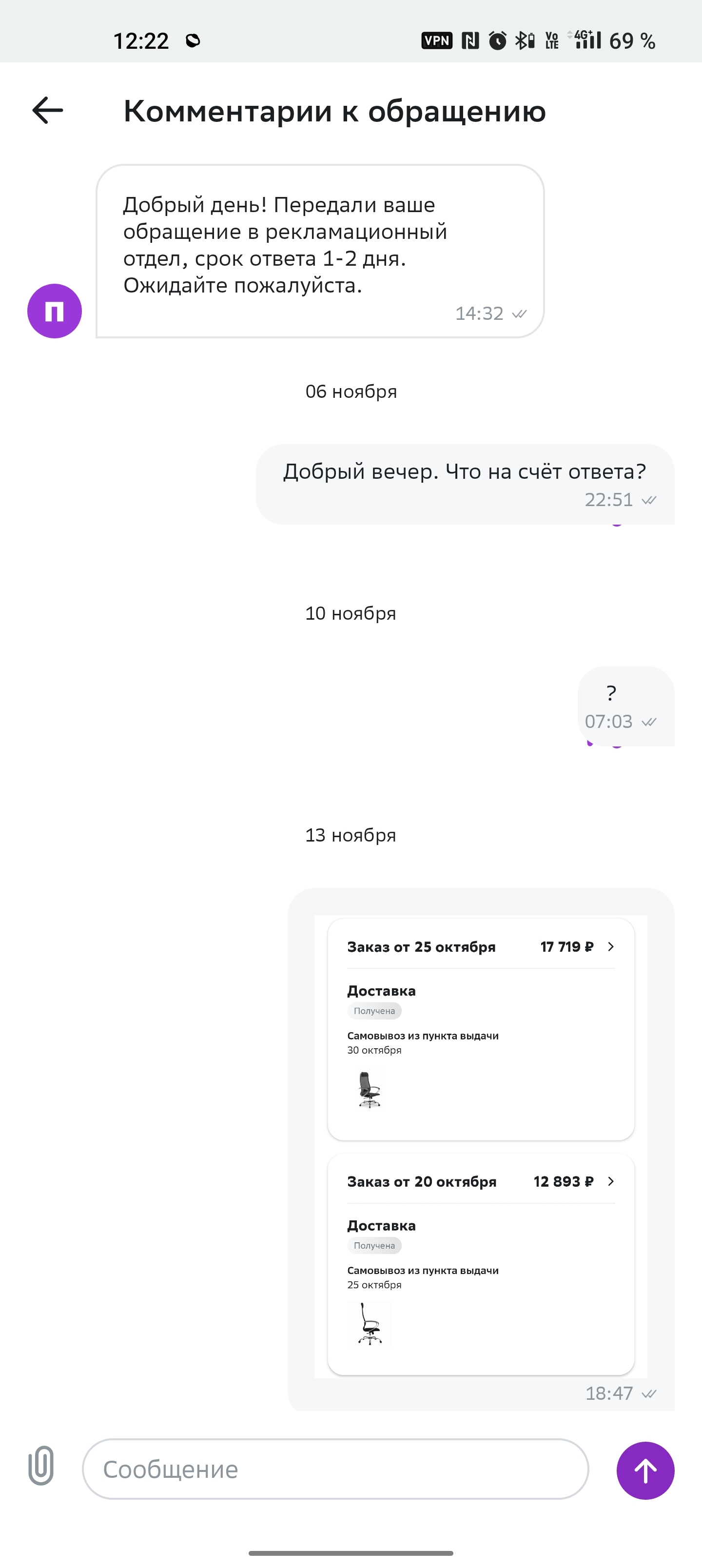 И что же по итогу ожидания? По итогу у меня кресло которое мне нахрен не нужно, а приложении стоит отметка что я оказывается всё забрал правильно, хотя статусы менялись то я 2й заказ забрал, то 2 заказа аж забрал то я вернул второе и забрал первое. Ни от Сбермаркета ни от Боксбери я не получил внятного ответа, да и собственно уже не нужно от слова совсем. Бонусы ни за первую ни за втрою покупку мне не пришли от слова совсем.