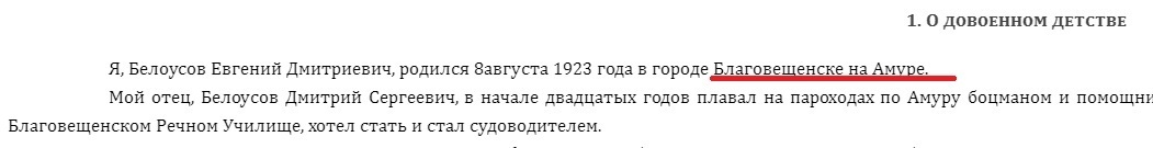 Белоусов Евгений Дмитриевич, родился 8 августа 1923 года в городе Благовещенске на Амуре...