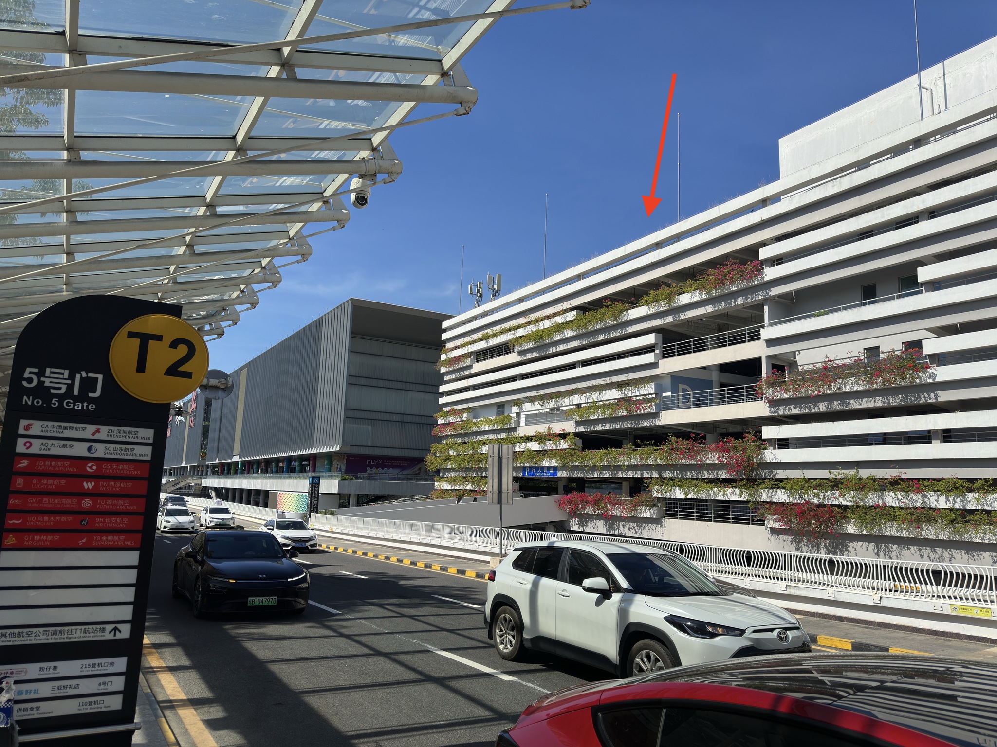 Такси Didi (имхо, лучший способ). Выходим на первом этаже на улицу, идем направо до здания, обвитого плющом. На первом этаже там туристические автобусы. Ищем лифт, он посередине, вход с улицы, со стороны аэропорта, откуда вы пришли. Также увидите толпы китайцев, идущих туда. Поднимаетесь на 3-й этаж парковки (3F). Вызываете Didi через Alipay.