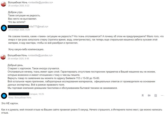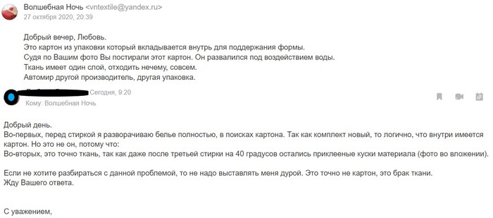 Итак, просто скрины моей переписки с продавцом постельного белья "Волшебная ночь" (27.10.2020 в 20:21) :