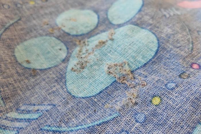 1. Почему по всей площади простыни (150 на 220 см) равномерно были эти отклеивающиеся куски? Картон-самоклейка?
