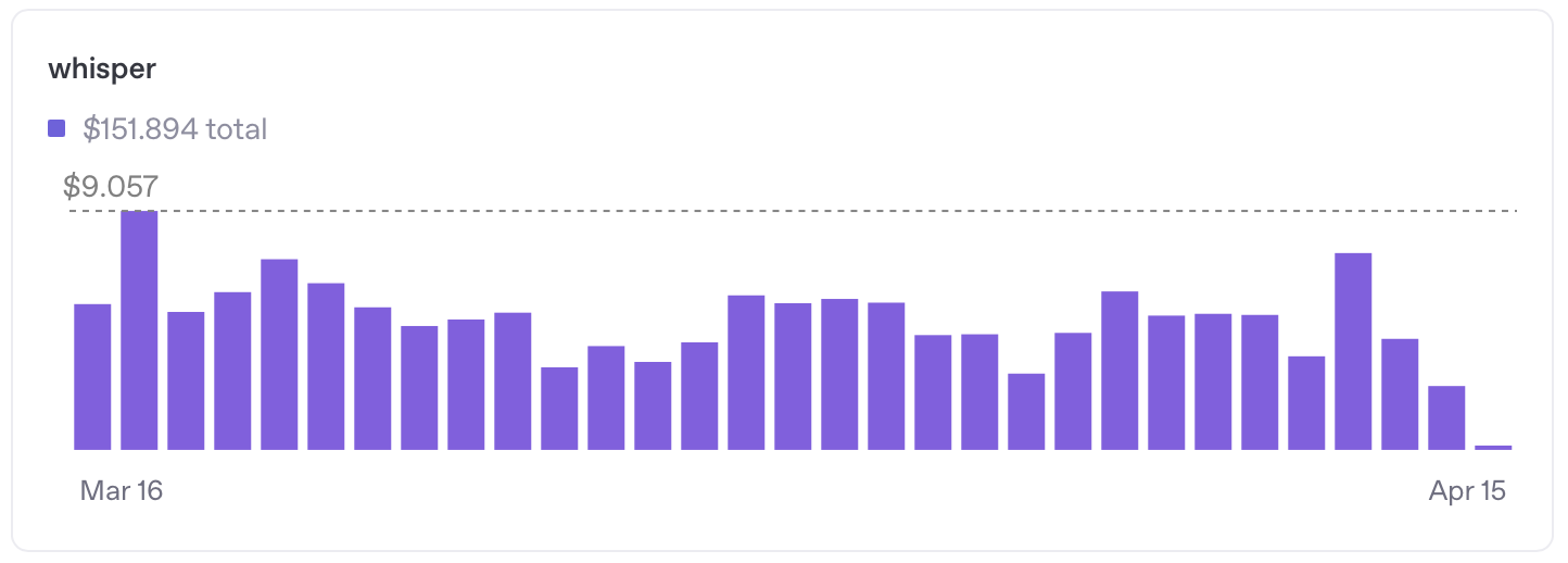 151$. Почти вся эта сумма ушла за распознавание речи через whisper, лишь небольшая часть - на генерацию комментариев.