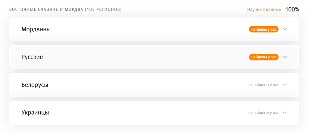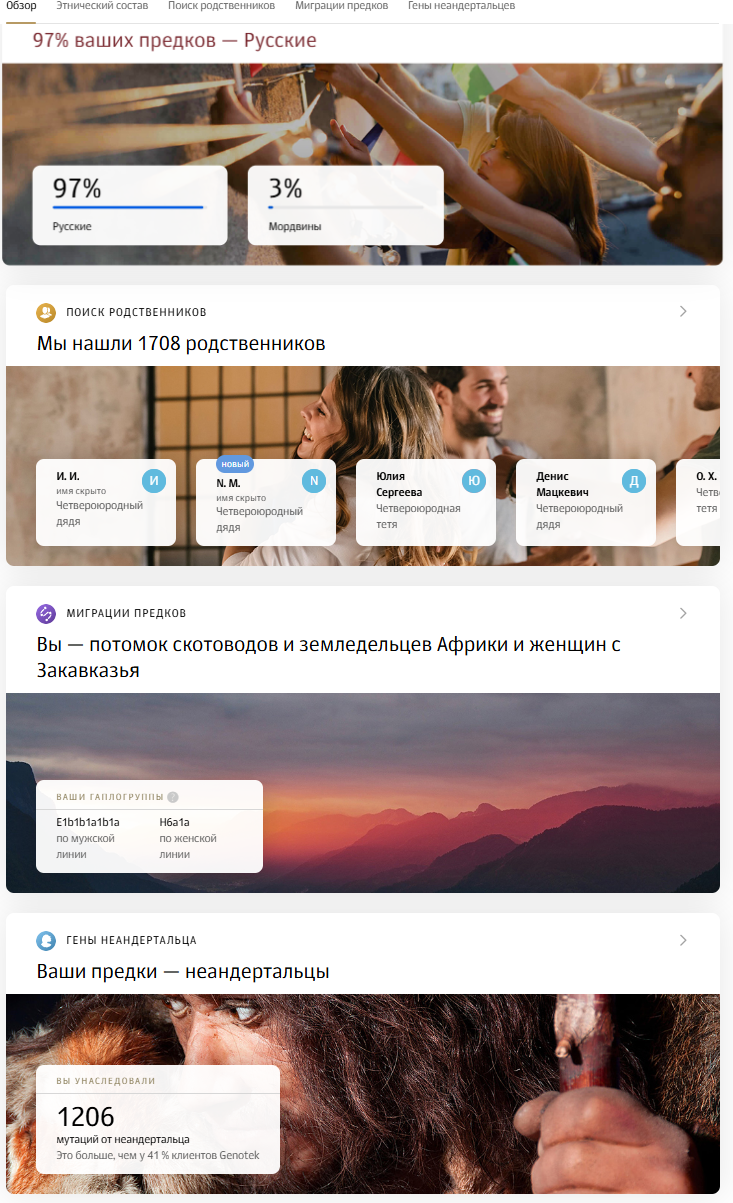 Зачем то вставили про неандертальца «это на 41% больше, чем у клиентов». Не понятно, что взято за 0%. Это значит, что я меня на 41% больше, чем у среднего клиента, либо если средний — это 50%, то генов неандертальца у меня меньше, хз. Но ладно, я негр-неандерталец, пускай.