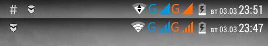 автор молодец, но за строку уведомлений телефона цепляться не вариант вообще ) я замарочен на внешнем виде всех этих примочек и меняю их раз в два дня, пока не найду что понравится - и вынести туда можно все что угодно, и внешний вид часов менять, а уж значок вайфая самому можно нарисовать
