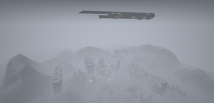 Уровень главного меню. Это птица, это самолет? Нет, на самом деле это сцена депо где выбираются поезда. Почему так? Чтобы туман не задевал. Почему на одном уровне с главным меню? Чтобы не было загрузки между ними и работало все быстрее.