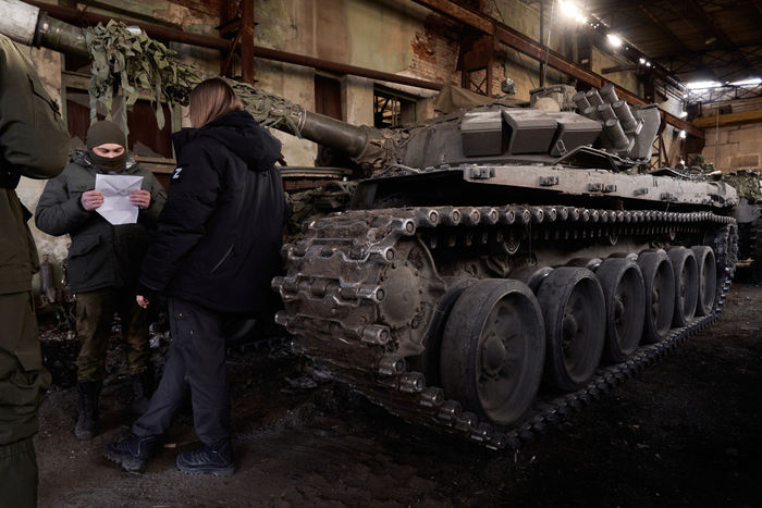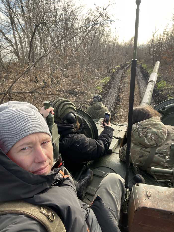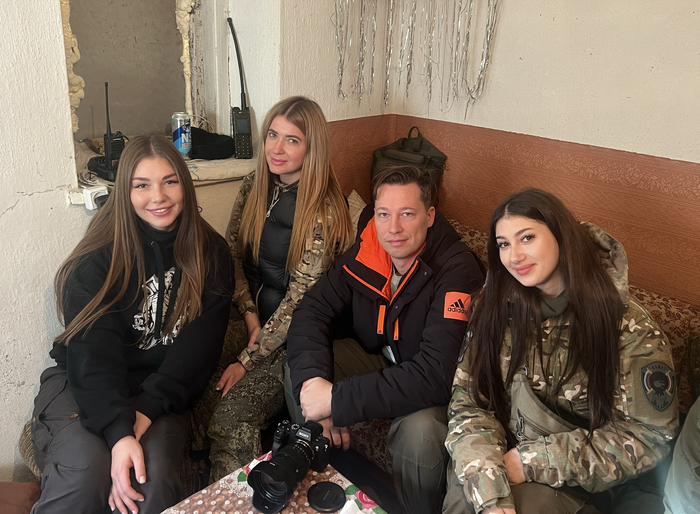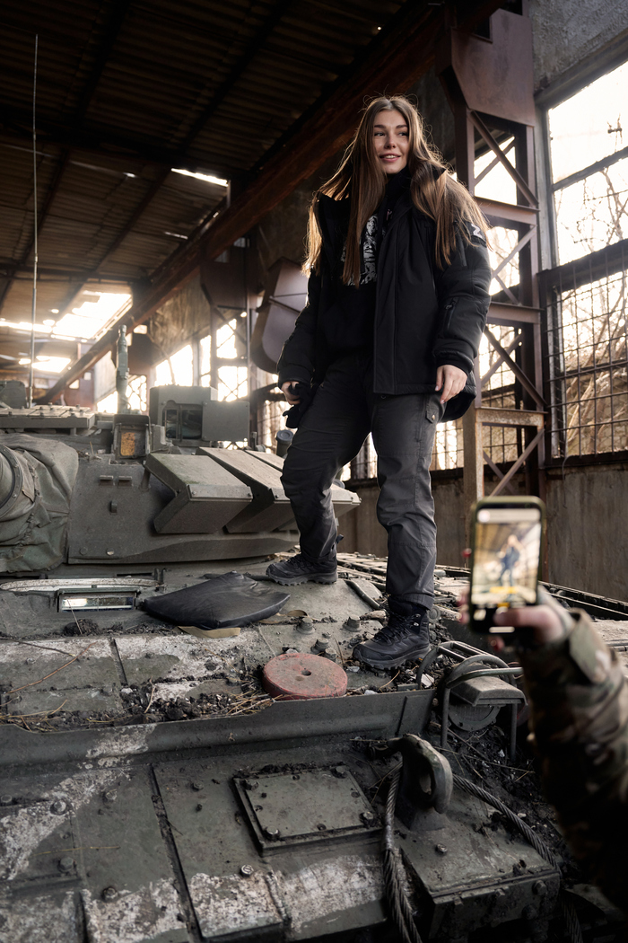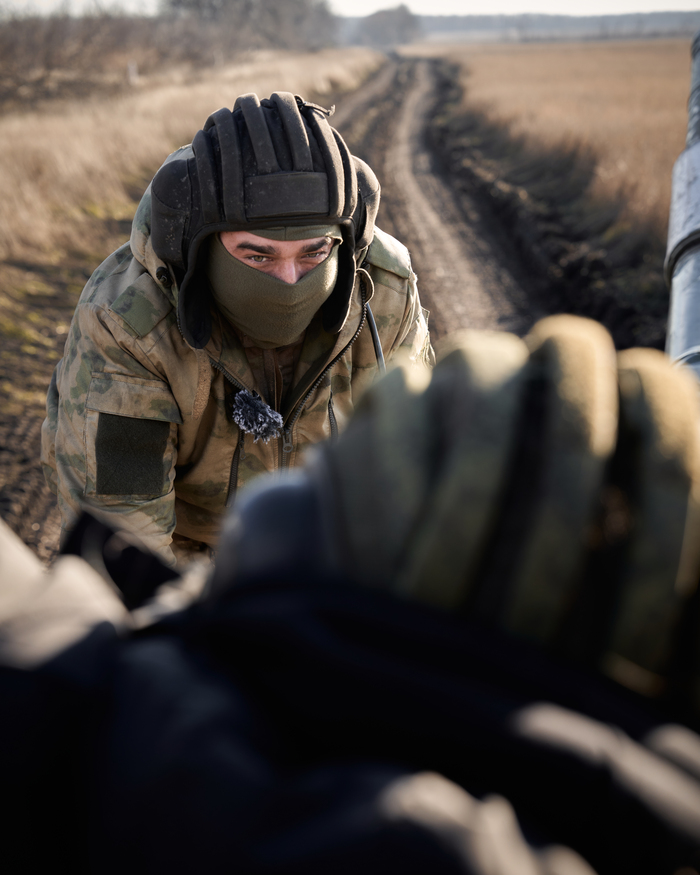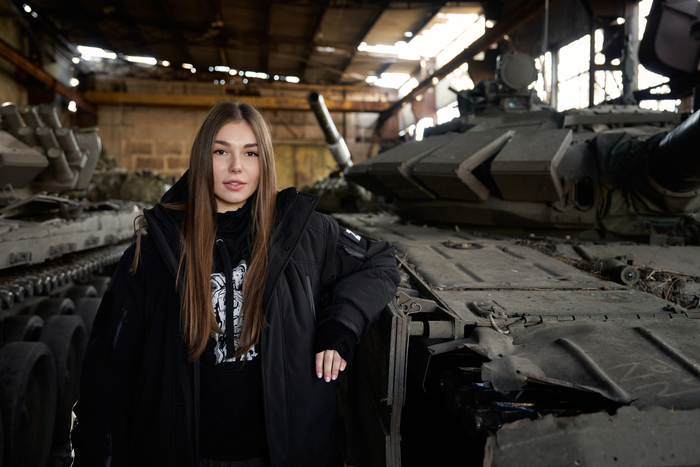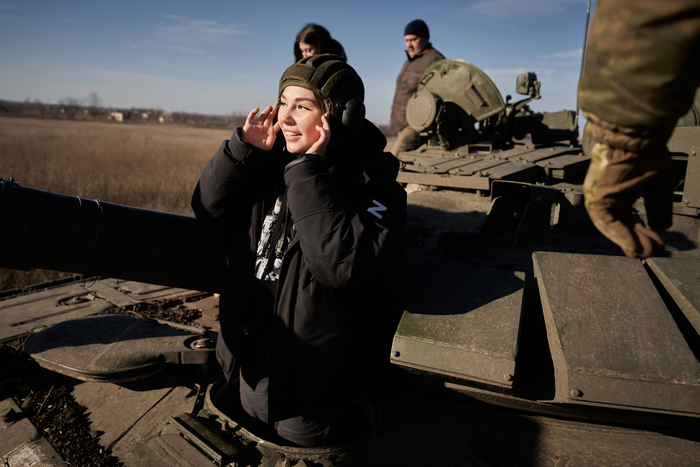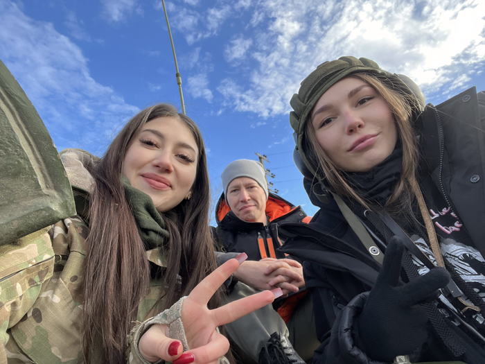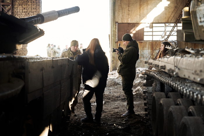 Времени на отдельную фотосессию она так и не нашла, поэтому я просто поехал с ней и ее съемочной командой на съемки программы "Мы Живы". Решил поснимать бэки, раз уж так. В этот день она привезла письма детей и зимние вещи нашим танкистам.