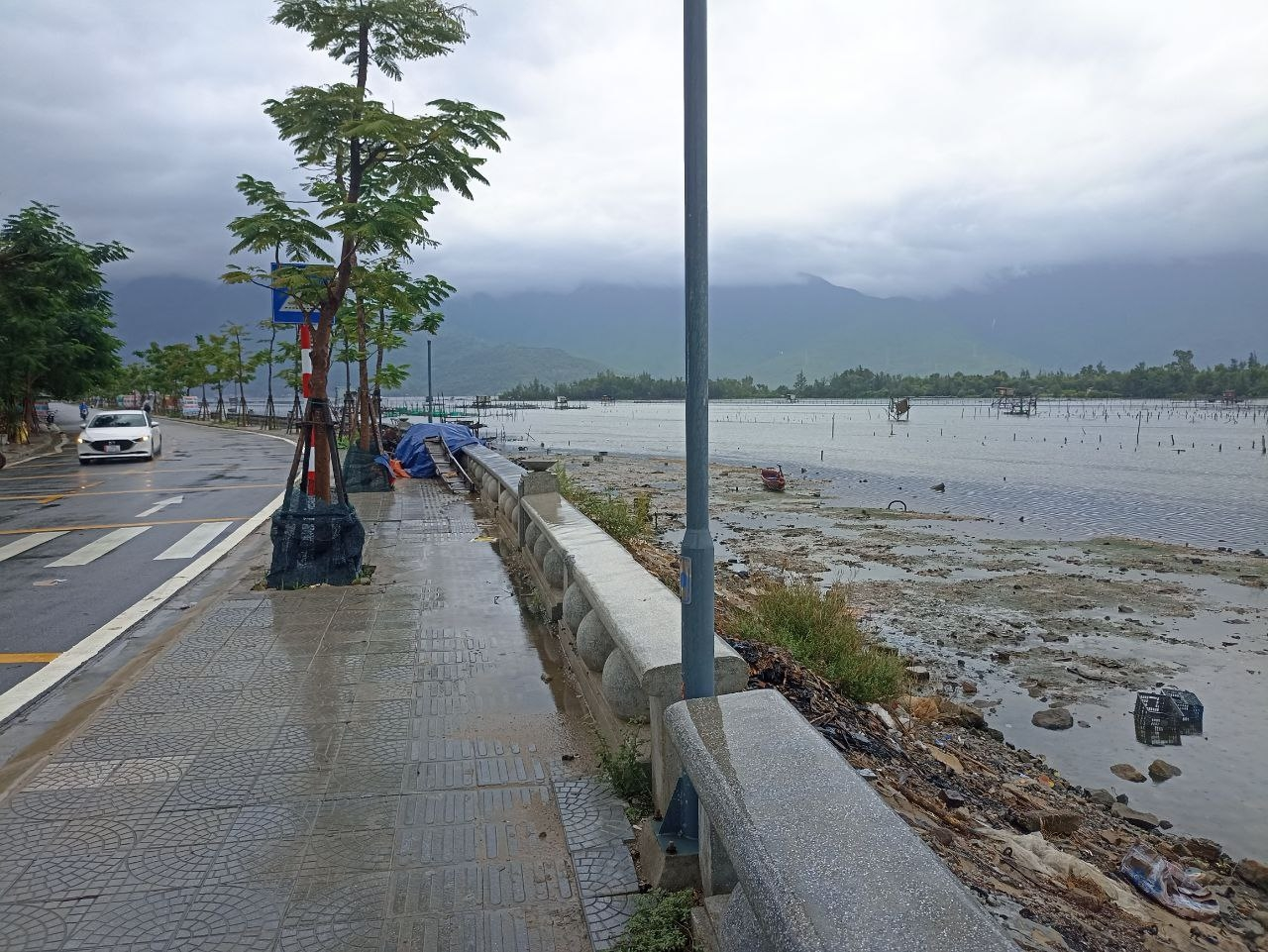 Я прошёл 10 минут и остановился вьетнамец на мопеде. Он подвёз до трассы, сэкономив мне полтора часа, а дальше пешком. Прошагал полдня по трассе. Дождь то прекращался то начинался вновь.