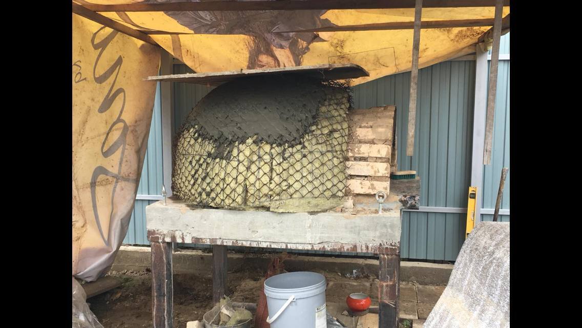 Много времени потратил на возведение арки и монтажа дымохода, чтобы не дымила печь. Потом утеплил и поштукатурил