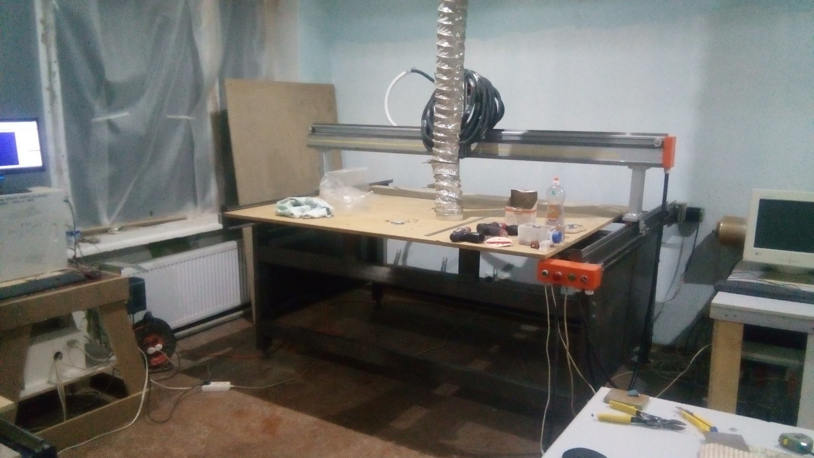 ... не могу оживить электрическую часть. Не хочет оживать и всё! День искал причину, два...неделю. И вот через пол года, начал продавать все купленные части из-за ненадобности. Звонит парень, просит выслать пару деталей, слово за слово, и я высылаю ему всего робота за три девять земель, просто так, в надежде на помощь. Прошел месяц или два, он нашел проблему (Китайцы плохо скопировали Arduino и перепутали дорожки). Приехал станок ко мне, я на седьмом небе от счастья (Василий спасибо тебе огромное). Все собрал, скрутил и...