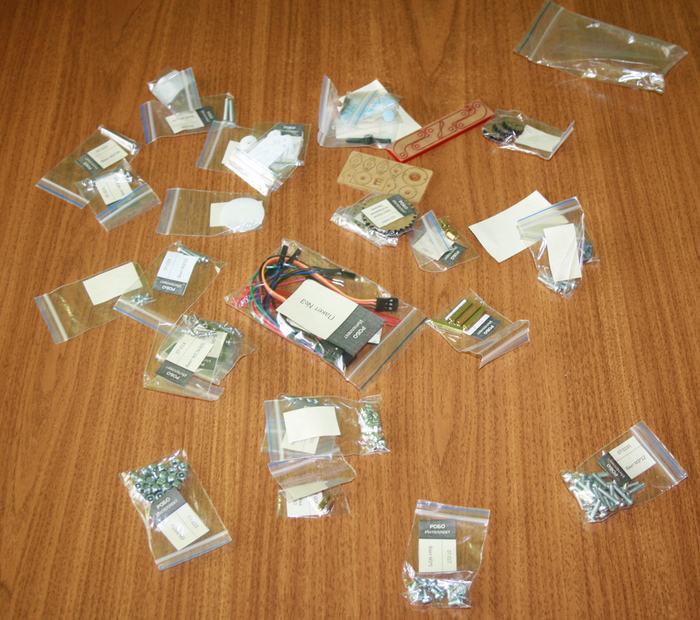 Что сразу хочу посоветовать — не пытайтесь заниматься сборкой на столике, где свободного пространства примерно 100 квадратных сантиметров. Только себя замучаете. Там столько пакетиков с винтиками, гаечками, шайбочками и прочей мелочью! Желательно подыскать себе для этой работы стол как минимум полтора метра на 70 сантиметров и убрать с него абсолютно все лишнее. Оставьте только то, что относится к роботу!
