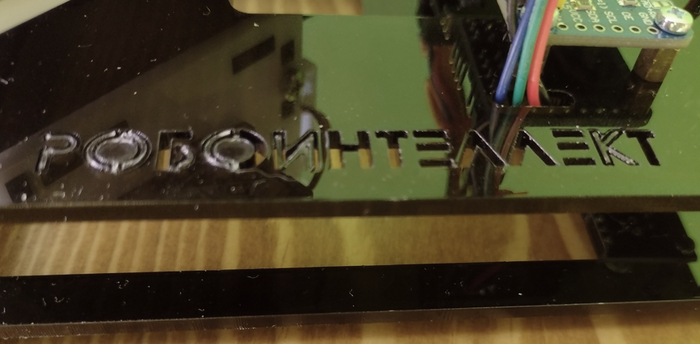 Для вырезания фторопластовых шайб лучше заранее приготовьте маникюрные ножницы, их в наборе нет. И будьте внимательнее. Я несколько раз собирала какие-то узлы неправильно, потом приходилось тратить дополнительное время на разборку и повторную сборку. Например, верхнее основание робота очень важно положить таким образом, чтобы слово «РОБОИНТЕЛЛЕКТ» читалось при взгляде сверху нормально, а не в зеркальном отображении. Иначе все прорези окажутся не на своих местах, светодиодный модуль попросту не поместится, наехав на другую деталь, а раскручивать все на этой стадии уже довольно муторно. Лучше перепроверить.