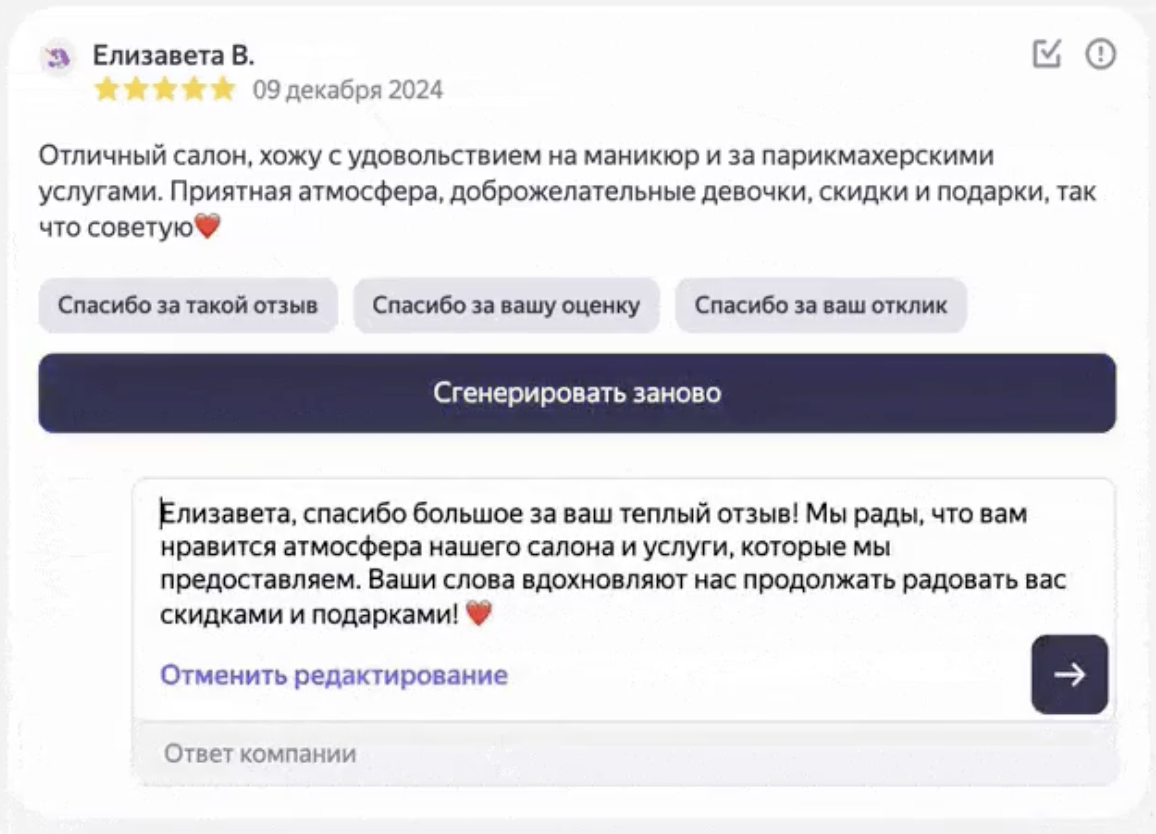 «Каждый вечер я просиживаю по 2 часа, отвечая на отзывы клиентов на Яндекс.Картах. Это важно для бизнеса, но у меня уже не хватает ни фантазии, ни терпения. Ответы становятся однотипными, клиенты это замечают, а мне стыдно перед ними. На прошлой неделе пропустил несколько негативных отзывов, и рейтинг сразу просел...».