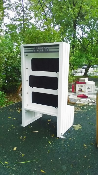 Монтаж был запланирован на весну 2018. Планировал установить у себя во дворе рядом с уже готовыми шашками, шахматами и доской для мела, также изготовленными своими руками.