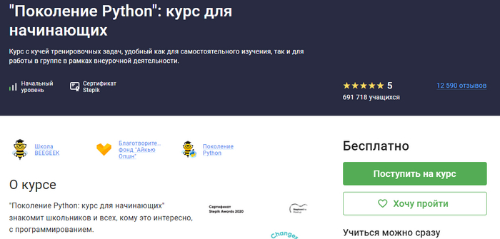Скажу честно, я прошёл не все курсы, а только несколько. Вот с какого курса советую начать учёбу: https://stepik.org/course/58852 . Вообще на этом сайте полно бесплатных курсов, но этот идеален для новичков, мне как гуманитарию он зашёл.