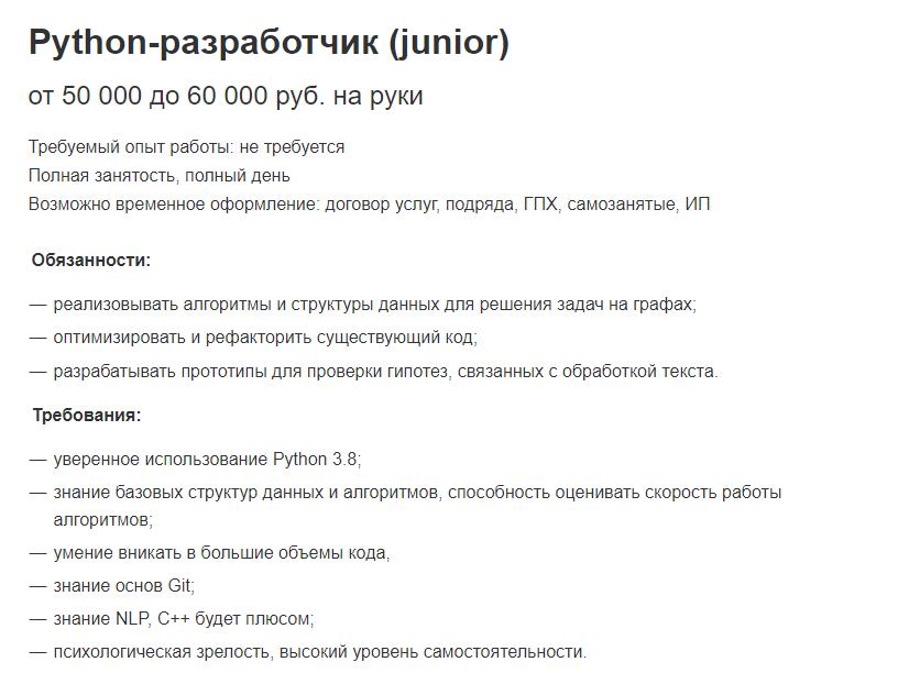 Но и этого хватило, чтобы устроиться Джуном с начальной зарплатой в 50 000 р. Вот она, нашёл на https://hh.ru/: