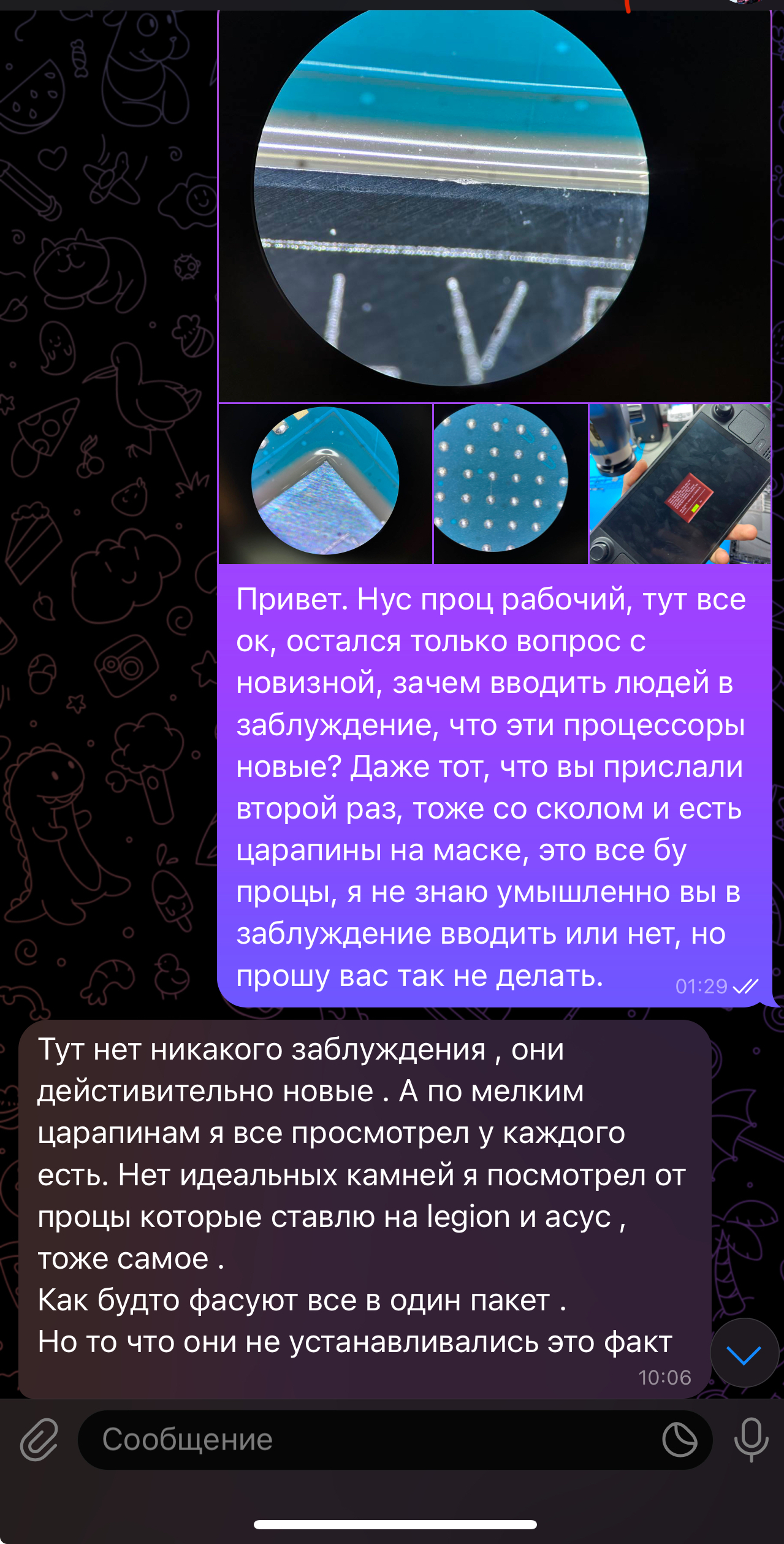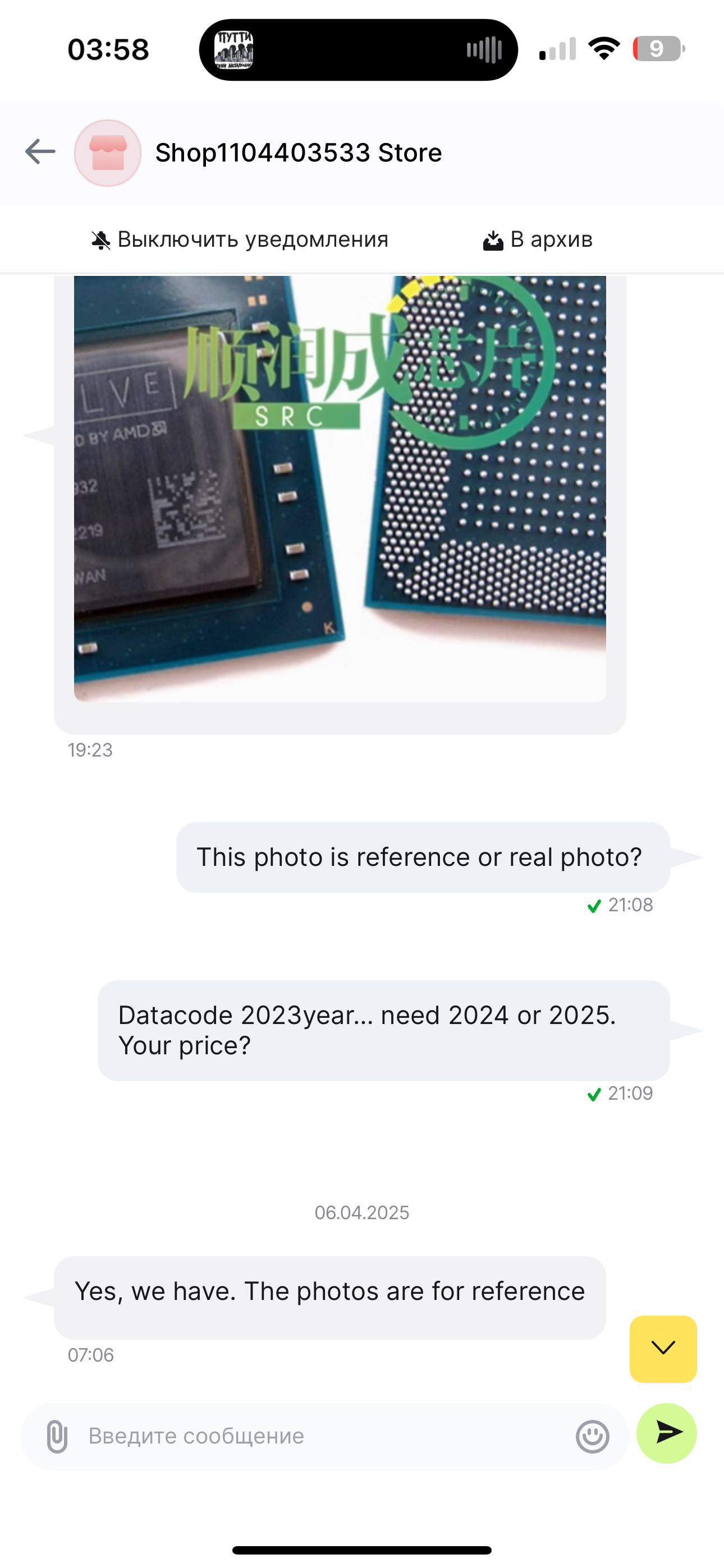 Далее согласовываем замену апу и понимаем, что добыть его не так то и просто, на алике их вообще нету, но написав рандомному продавцу чипов, получаем 99% бу проц за 11к с не понятной работоспособностью и отсутствием гарантий:
