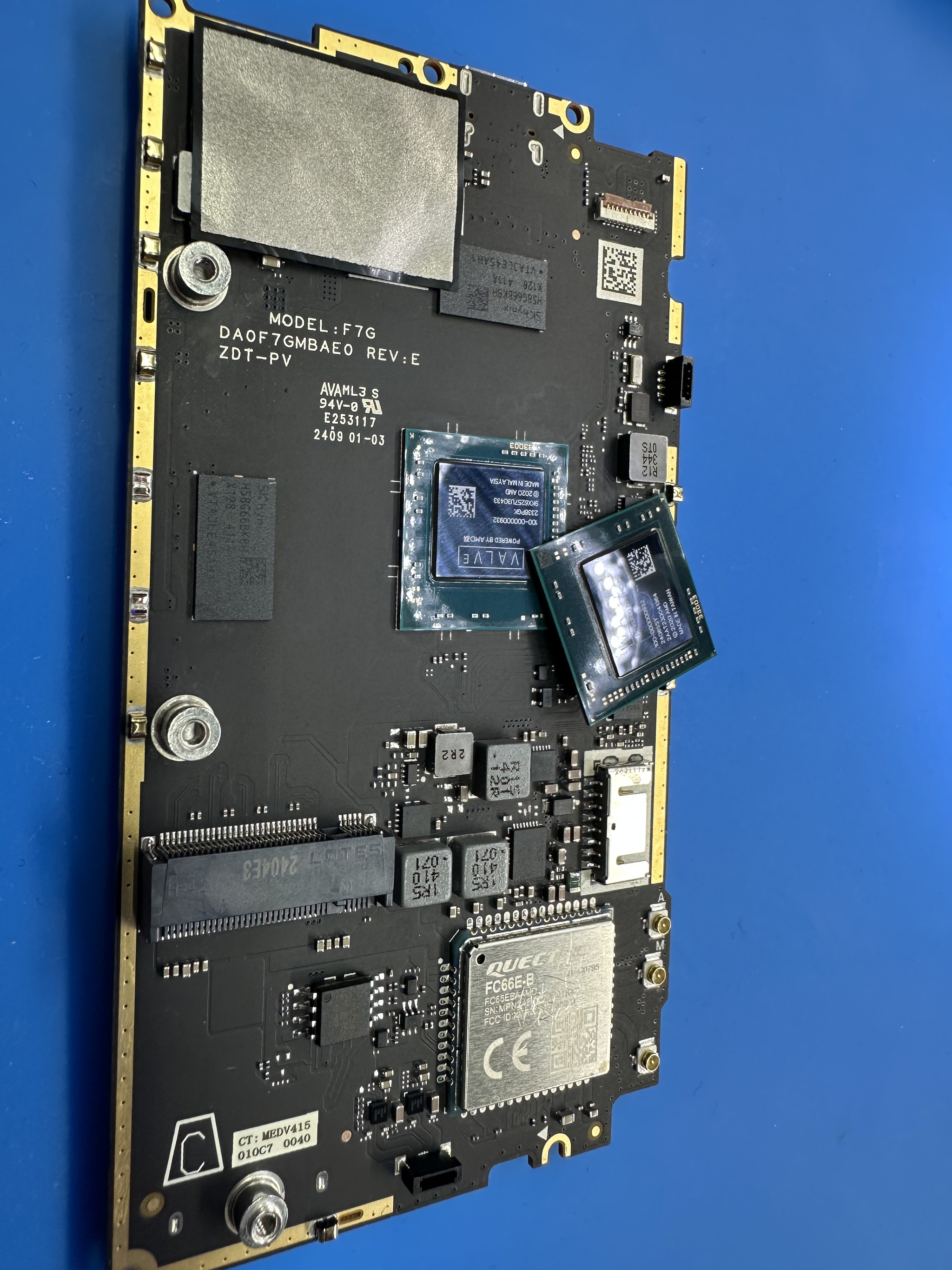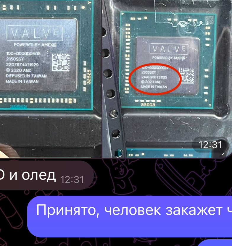 Нус замена мульта никак не изменила ситуэйшн, ну и да, естественно все питания везде были, присутствует вычитка флешки биос, было проверено осликом, проц даже греется как будто висит на каком-то посткоде, далее был приобретен для исследования и возможной подкидки заведомо живого процессора steam deck oled с авит за 45тыщ полностью живой: