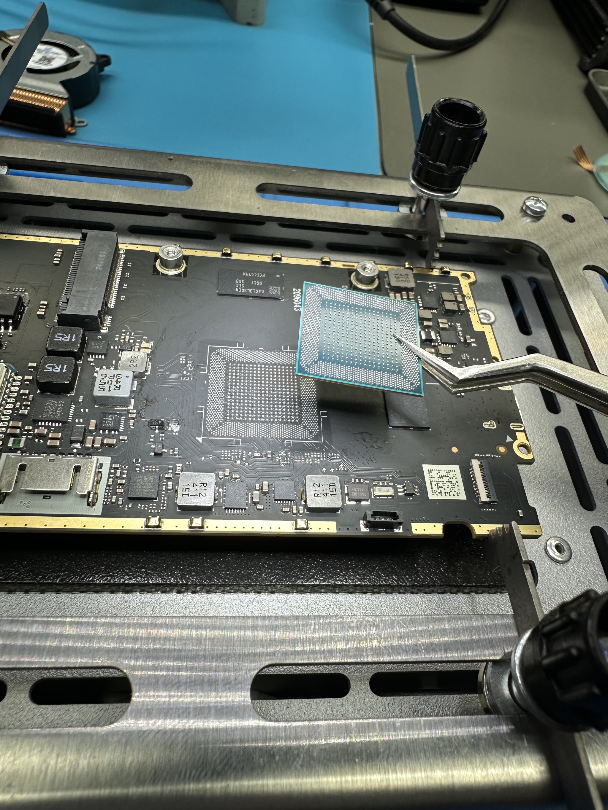 На данном этапе по вложениям 15к прогер и 45к стимдек:) штош, поковыряв плату рабочего, я понял, что процессор должен куда сильнее раскаляться при нормальном запуске, чего у меня не происходит, а значит явно мы висим на каком-то посткоде, было принято решение попробовать демонтировать проц с клиентского и посадить на мою заведомо рабочую плату: