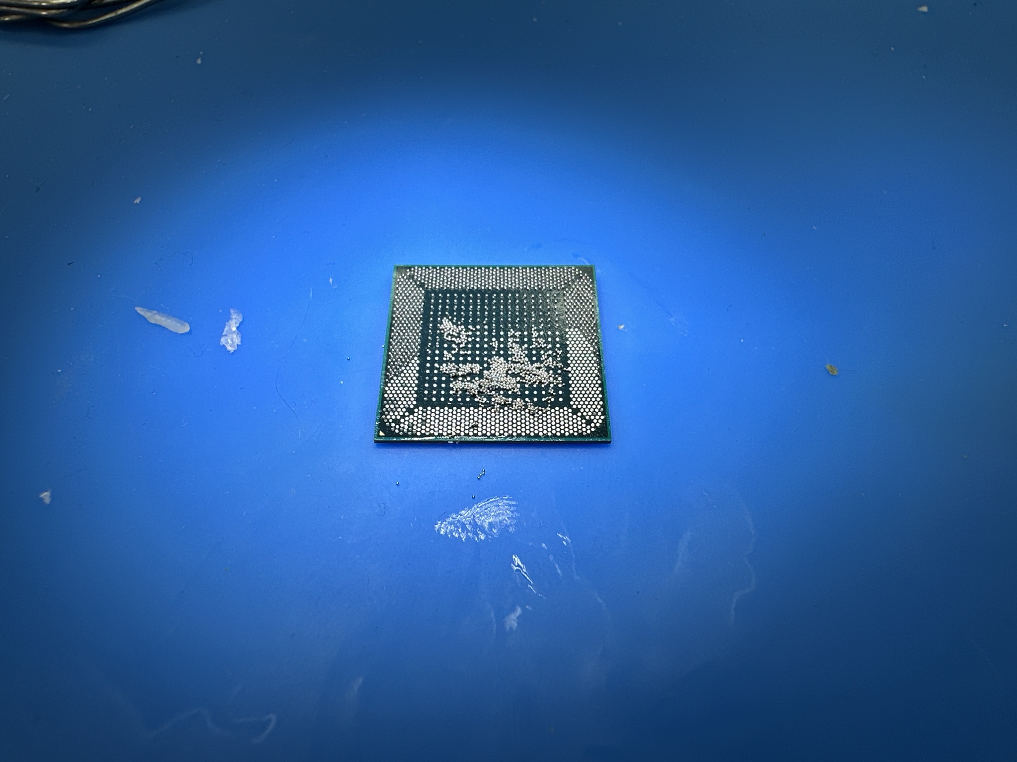 И получаем красоту, посадив которую запуска не произошло, моя плата вела себя так же, как и клиентская, а значит если быть уверенным в качестве монтажа процессора, то он 100% мертв.