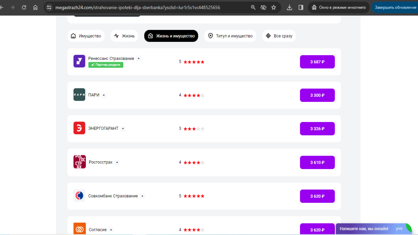 Пари - 3300 это и страхование жизни и имущества. Энергогарант 3326 жизнь и имущество. остальные дороже