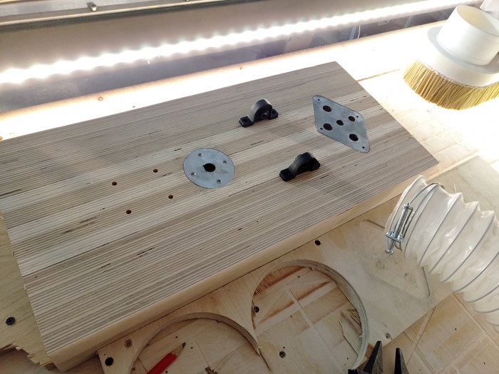 Конечную идею перенёс "на бумагу", а точнее на комп. Начертил, построил 3d модель и на её основе сделал управляющие программы для ЧПУ станков - деревянные детали на фрезер, стальные на плазморез, а всякую вспомогательную мелочь на принтер.