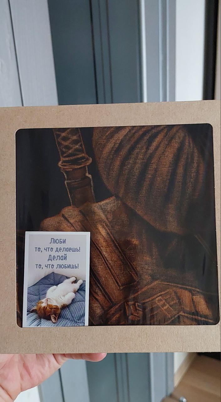 Ну вот вроде и готова футболка была уже давно, но всё руки не доходили до отправки. И когда уже Александр выложил пост о том, что замутил коллабу по футболкам, понял, что уже пора отправлять подарок. Связался с Александром, описал ситуацию, жена упаковала всё красиво, ну и футболка поехала.