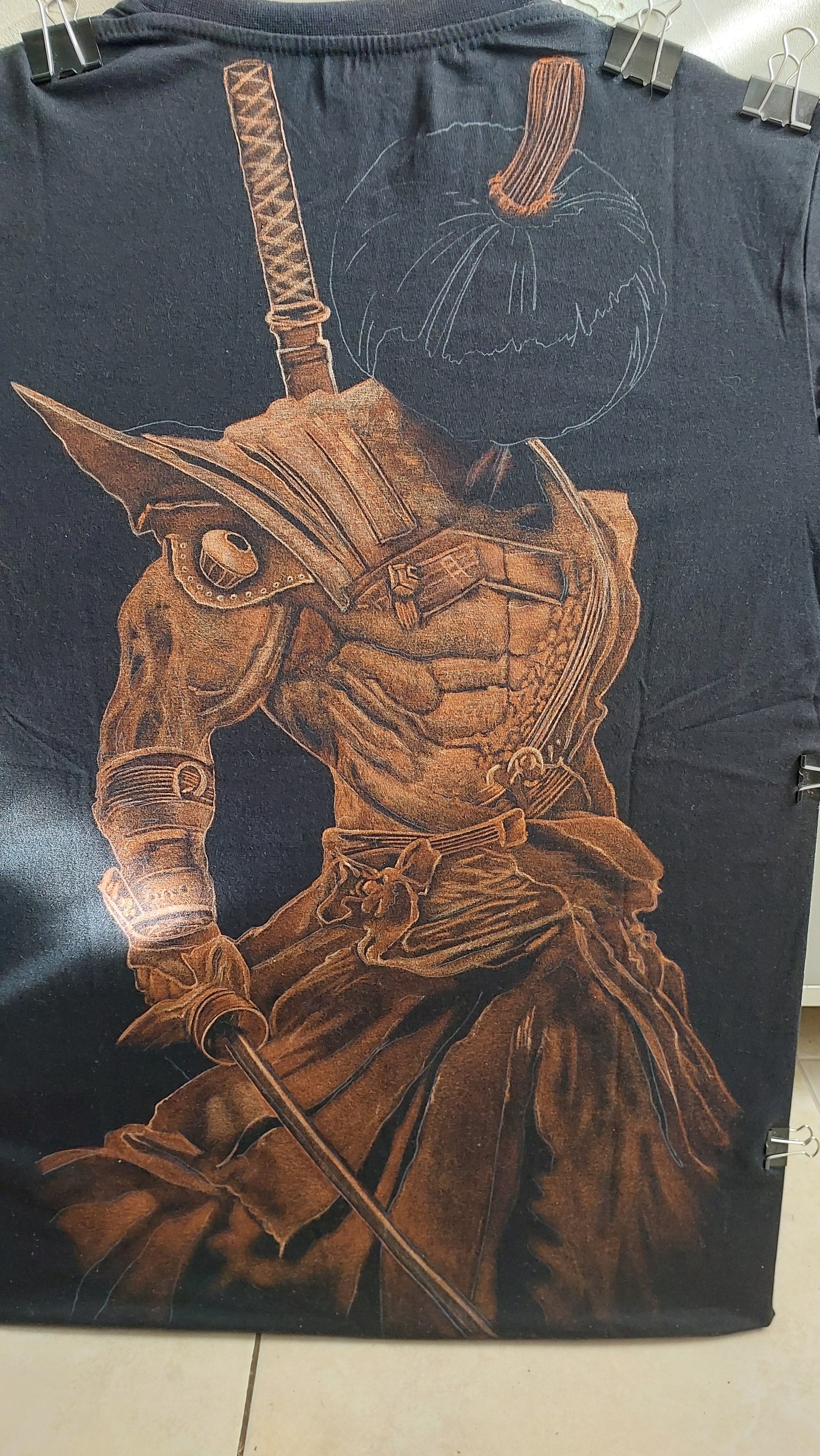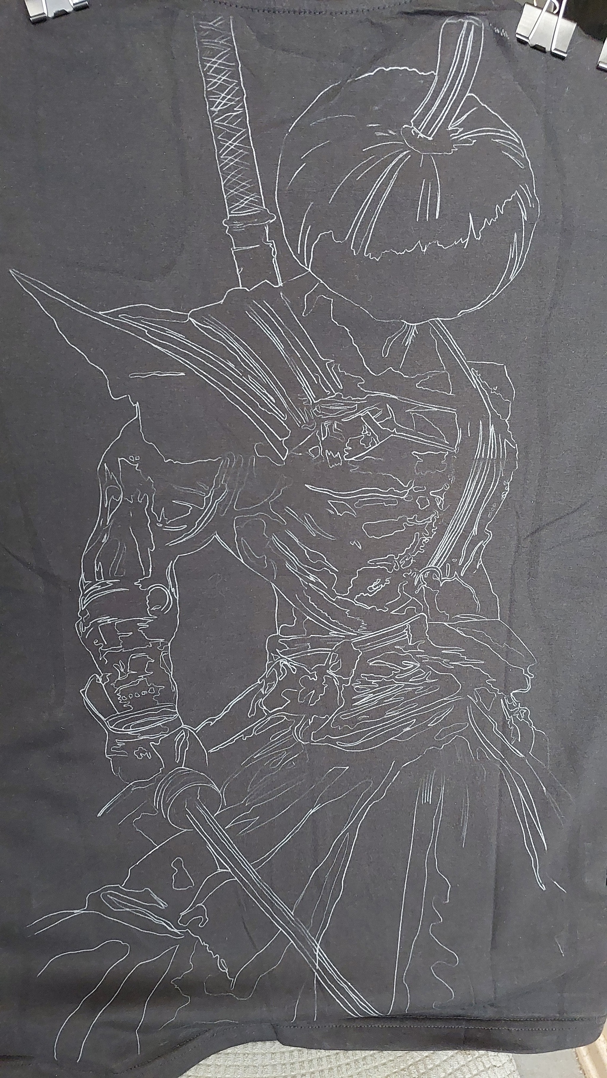 Закрепляем на футболке и понеслась переводить. Залипаем на пару часов и... получаем вот это...