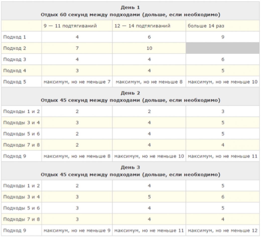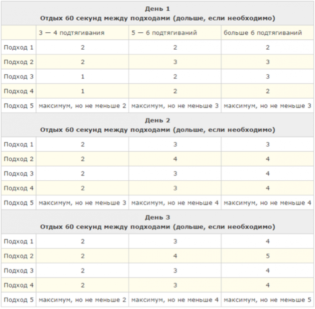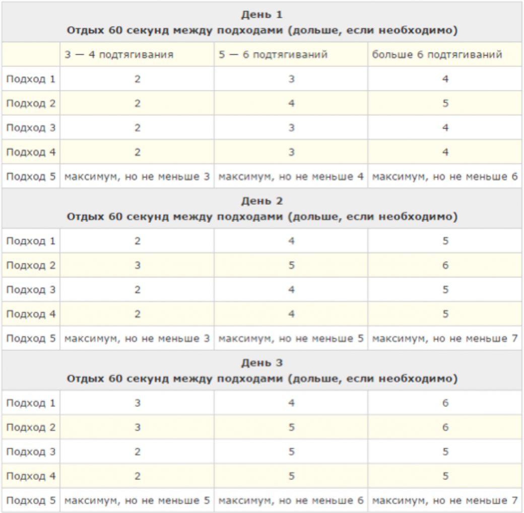 Подтягивания с этого сайта я делаю уже 2 дня и в понедельник закончу первую неделю. В среду буду подтягиваться на максимум, чтобы определить сколько я могу подтянуться. Так и буду делать на четвертый день тренировок.