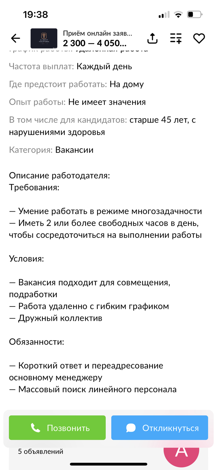 На этом пока все. Было ещё много объявлений, где также предлагали перейти в другой мессенджер, но там мне на мои вопросы о работе никто не ответил.