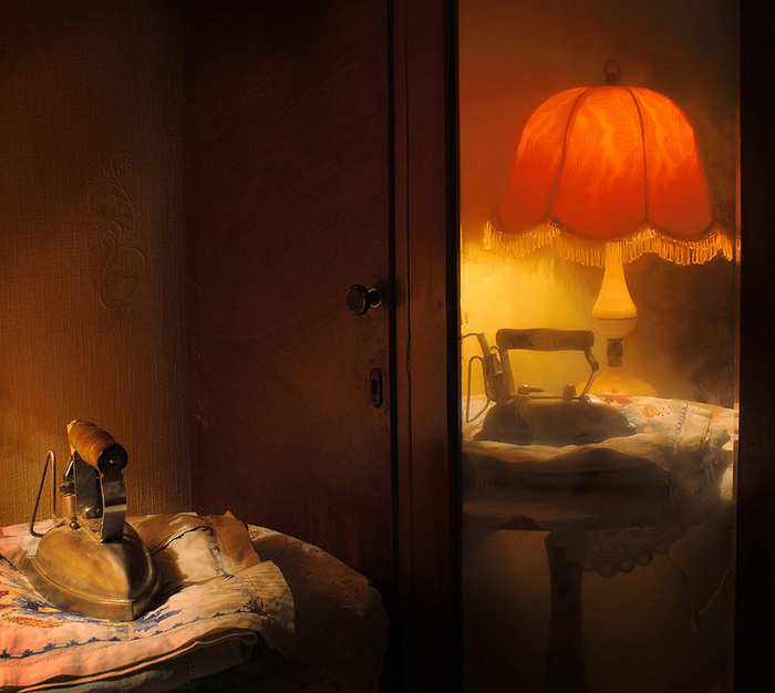 А потом я переехала под Таганрог и открыла для себя мир местной барахолки. Я покупала старые вышивки, старые утюги и лампы, всякие алюминиевые бидончики и мисочки. От хозяев остался старый шкаф, моя любимая "фотомодель"