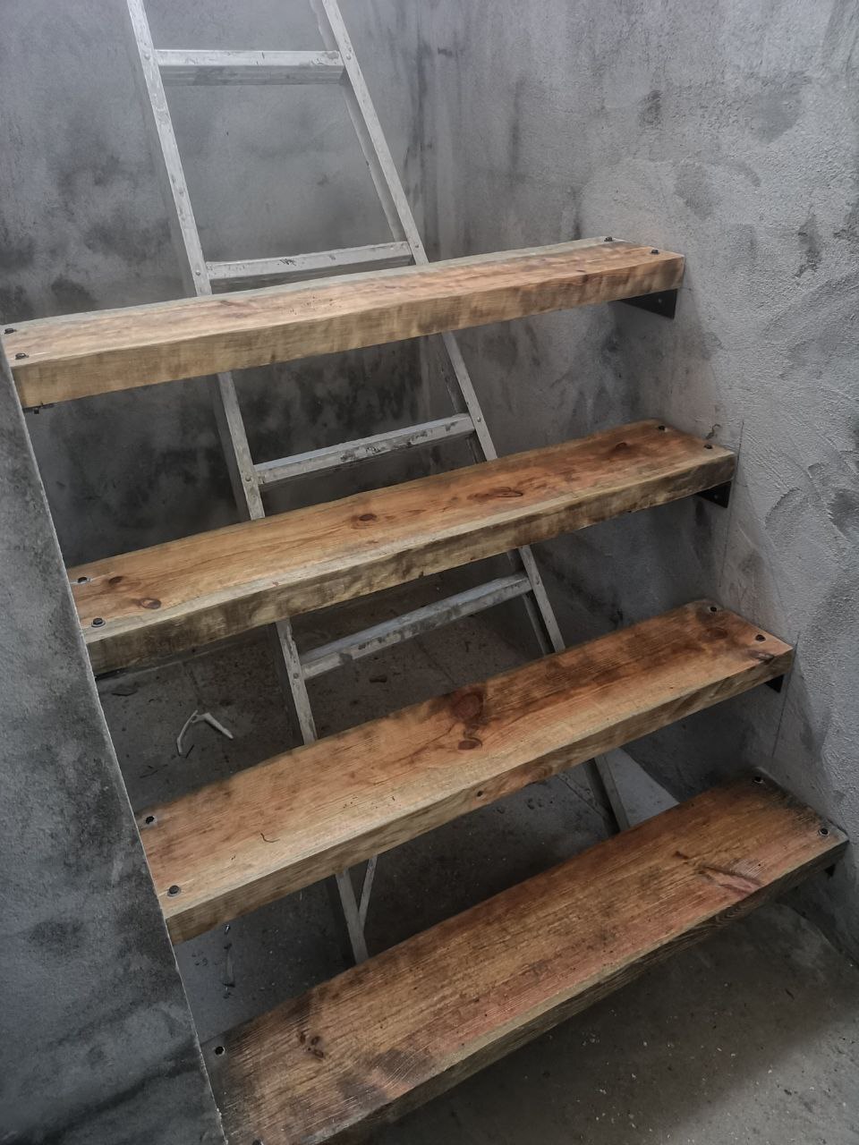 Не прошло и три года, как мне надоело скакать в подвал по стремянке и первым делом в этом году решено было сделать лестницу. От кровли осталось много досок толщиной 50 мм, вот из них я и начал пилить ступени.