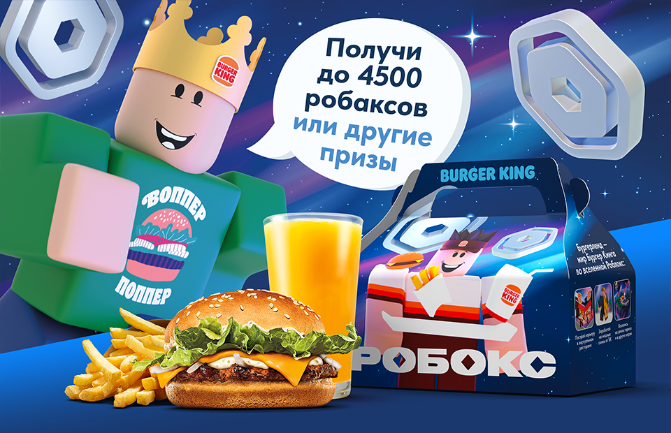Моей дочке 7 лет, и она играет в роблокс. Когда мы ходили по ТЦ, то она увидела, что в Бургер Кинге продается бокс, купив который можно получить робаксы, и конечно же, захотела попробовать.
