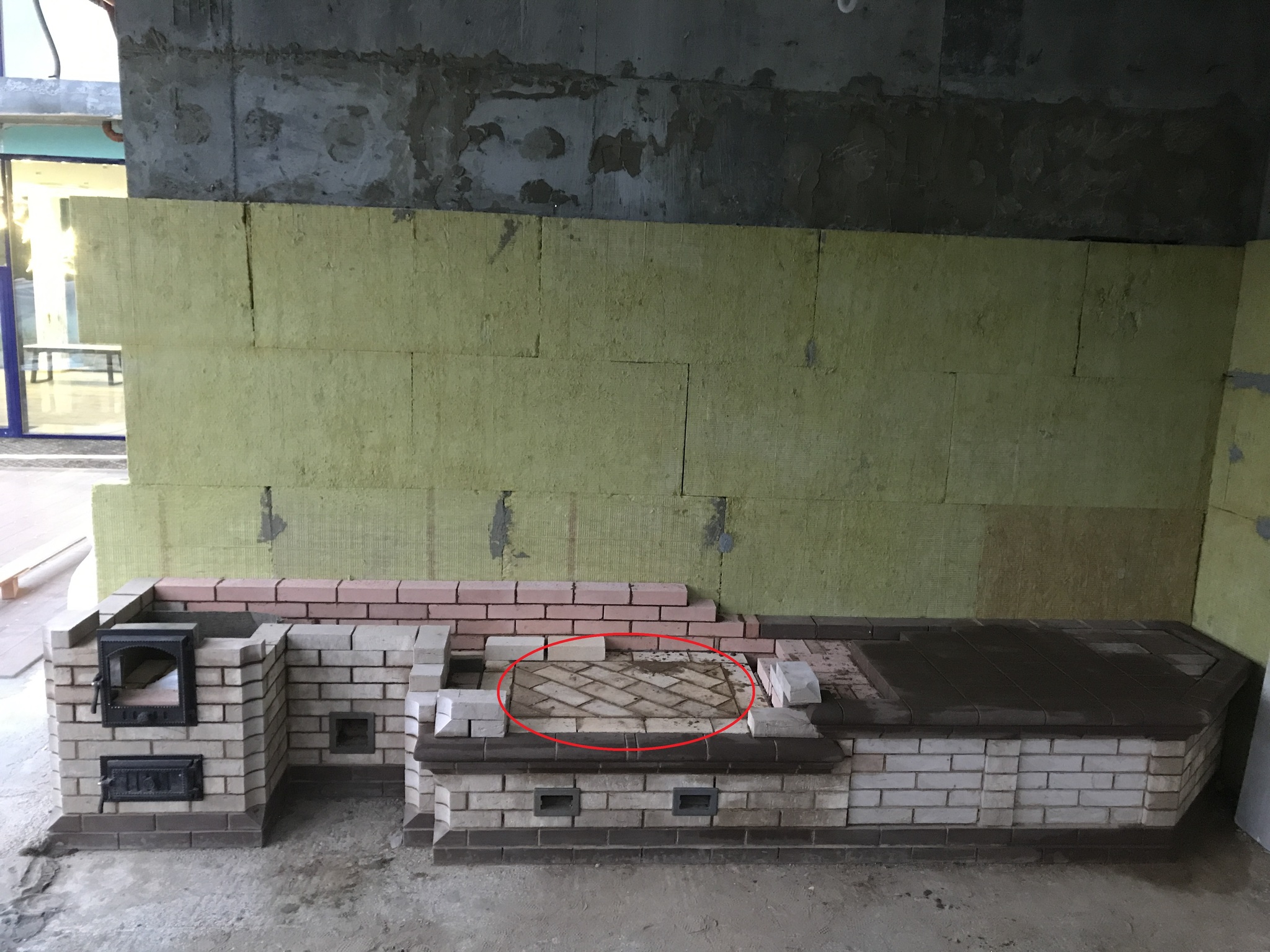 На 13 ряду выкладываем столешницу и устанавливаем чугунную плиту