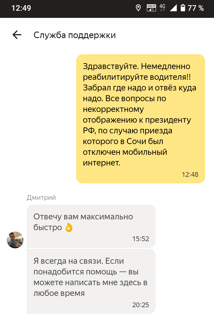 оператор: претензий к водителю нет?