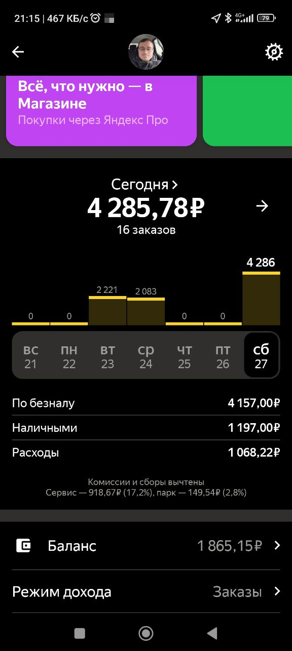 На своей до этой осени в режиме подработки делал чистыми 15-25, Воронеж. Эконом. Это 3-5 часов после 17.00, не каждый день , и иминимум 8 в один из выходных. Это повторюсь подработка. Как сейчас уже не скажу, но было примерно так. Ниже из последних скринов что нашел, это для неделя грязными в таком себе ленивеньком режиме, ГСМ там максимум рубля 4. А/М Лада гранта 2021 год.