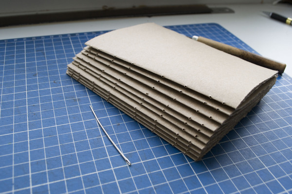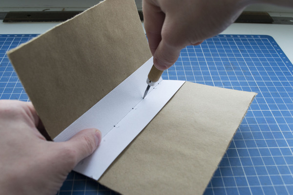 После, отверстия можно расширить с помощью иглы, чтобы не делать этого непосредственно во время сшивания.