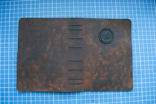 Далее, вырезаем обложку. Закругляем края (я это делаю с помощью монетки) и сверлим/пробиваем отверстия.