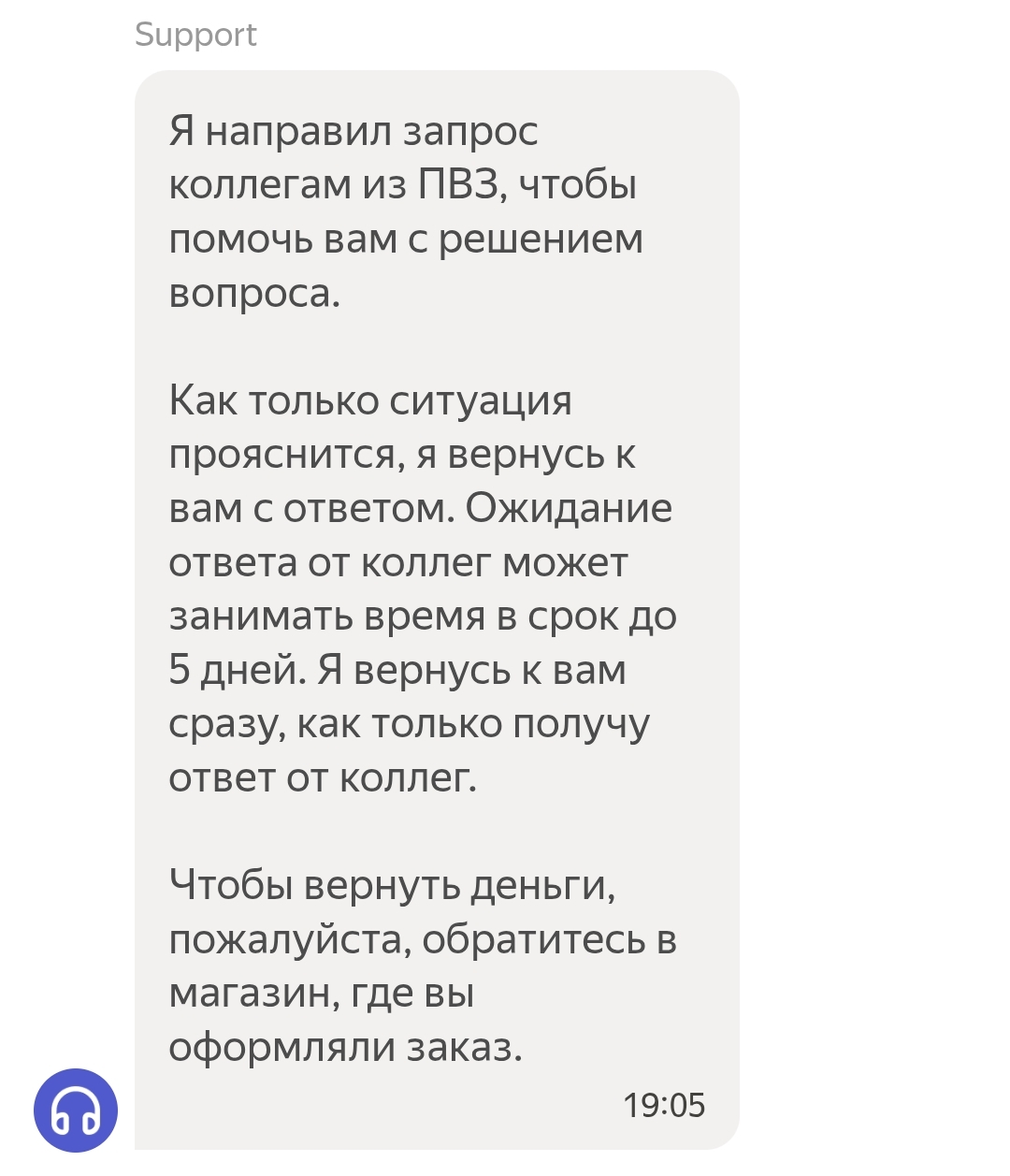 В день когда товар должен приехать, я опять обратился в поддержку и получил ответ, о том что , теперь, им нужно время для выяснения всех деталей.