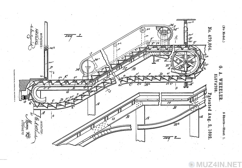 "Elevator" («Подъёмник») Джорджа Уилера, запатентованный 2 августа 1892 года