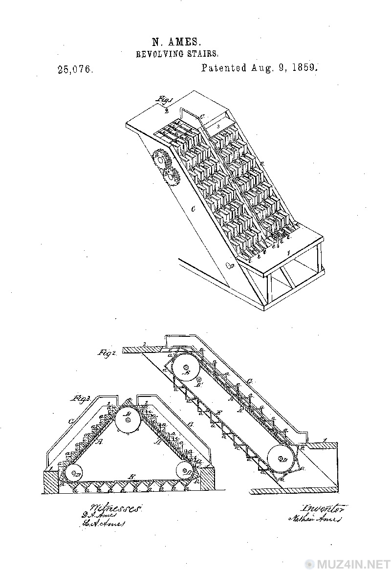 Патент Натана Эймса "Revolving Stairs" («Вращающаяся лестница»), зарегистрированный 9 августа 1859 года