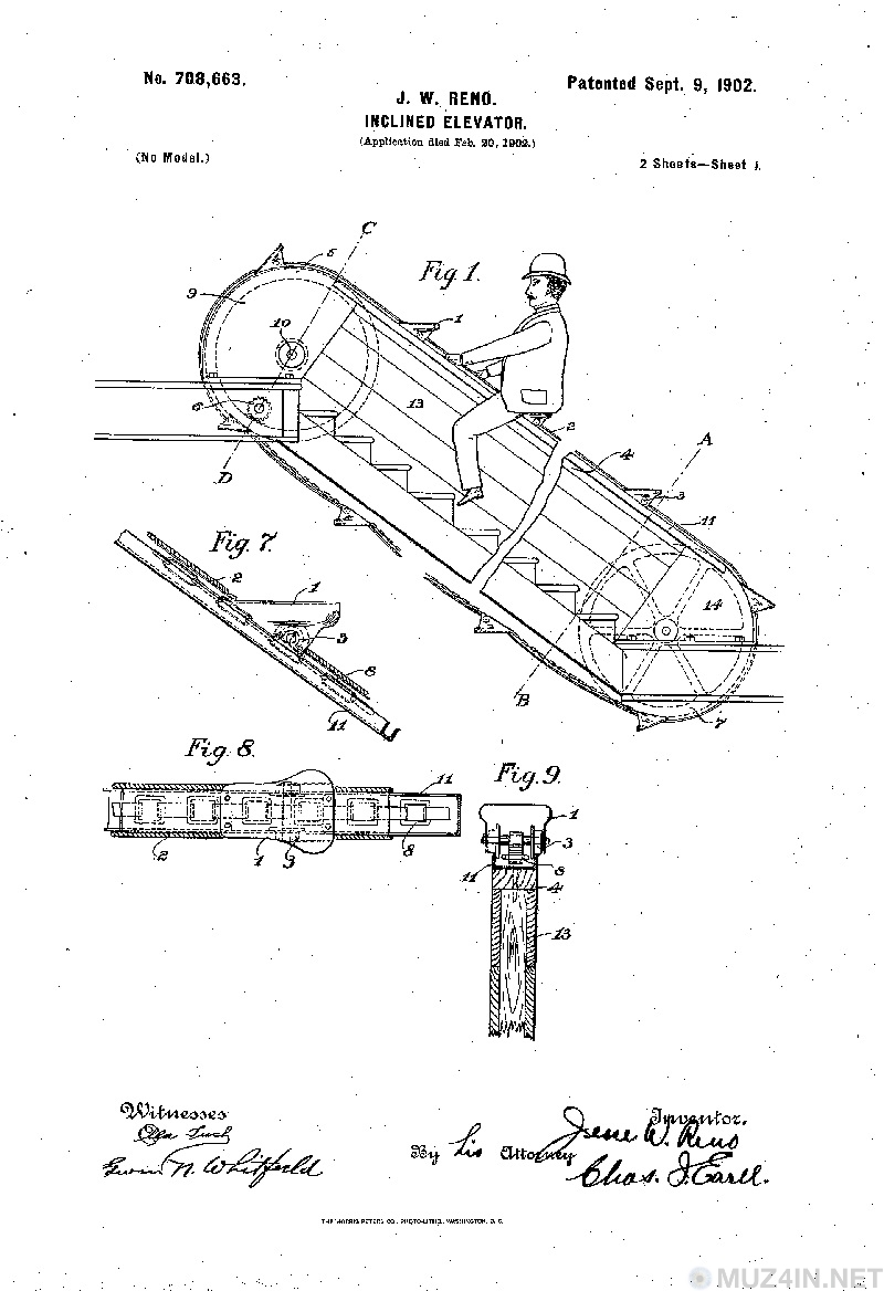 «Наклонный подъёмник» Джесси Рено, запатентованный 9 сентября 1902 года