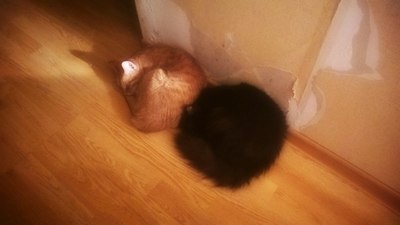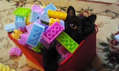 Наш черножопый тоже демон, его просто погладить без сумасшедших выкидонов невозможно было :) Любитель обрывать шторы и нападать исподтишка. Но, как только увидел дочь, каким-то чувством понял, что тут надо быть аккуратным и терпеливым :)