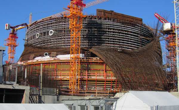 Стройка идет полным ходом. Через год по-моему только первый реактор запускать будут. Сейчас только сооружают купола над реактором.